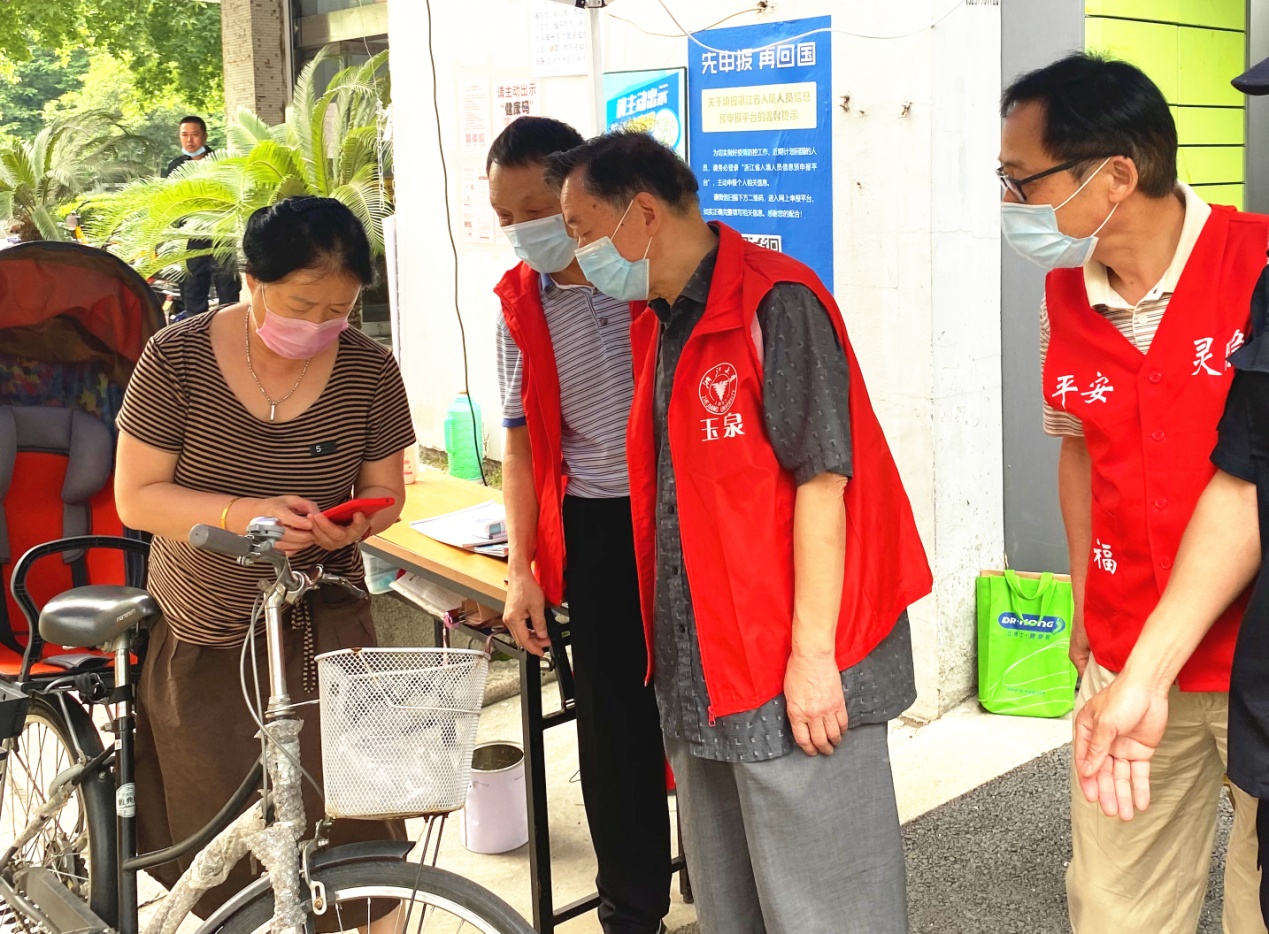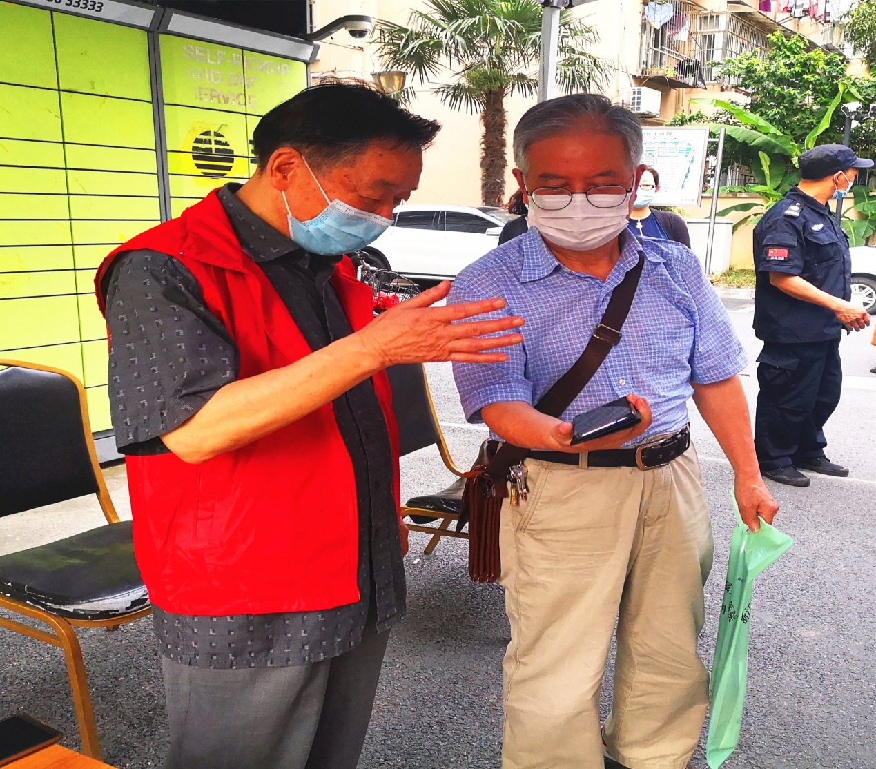 5月27日,原浙江大学党委书记梁树德在求是小区入口协助查验进出人员健康码、测体温,参与“银龄”志愿服务队助力社区活动,身体力行做好防疫防控工作。此次志愿服务活动由浙江大学离退休工作处玉泉管理服务中心携手求是小区业委会组织开展。