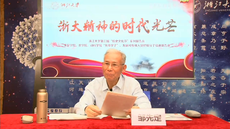 2020年5月22日下午,浙江大学求是学院入党积极分子培训暨浙江大学第三届“党史文化节”系列报告会《浙大精神的时代光芒》以线上直播的形式如期举行。党委学工部副部长金芳芳、求是学院党委副书记兼蓝田学园主任陈立明、云峰学园主任谭芸、丹青学园主任徐晓峰以及求是学院各党支部书记、辅导员和全体入党积极分子参加培训会。求是学院特邀浙江大学关工委顾问、求是宣讲团团长邹先定教授作“浙大精神的时代光芒”专题报告。会议由陈立明主持。