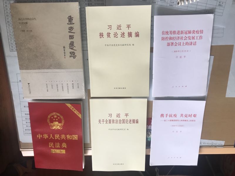 疫情发生以来,医院实行封闭防控管理,外面的同志无法进入医院住院部,虽然十分牵挂,只能通过手机联系或个别预约看望。玉泉离休党总支部及时掌握离休干部情况,并根据离休党工委的统一部署,送学上门,准备了《中华人民共和国民法典》、《习近平关于全面依法治国论述摘编》、《习近平扶贫论述摘编》、《习近平在统筹推进新冠肺炎疫情防控和经济社会发展工作部署会议上的讲话》、《携手抗疫共克时艰—习近平在二十国集团领导人特别峰会上的发言》、《重走西迁路》、浙江大学报等“学习大礼包”。