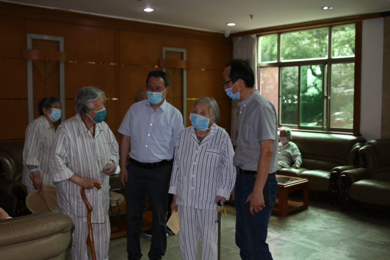 2020年6月23日上午,玉泉离休党总支专程赴望江山疗养院看望住院的于秀萍、项素菁、王桂珍、张慈福、骆励群、徐安、梁慧君、陈圣玉等8位老干部。在办理了相关手续后,办公室工作人员来到了疗区大厅,为老干部送上党建学习资料和健康包。
