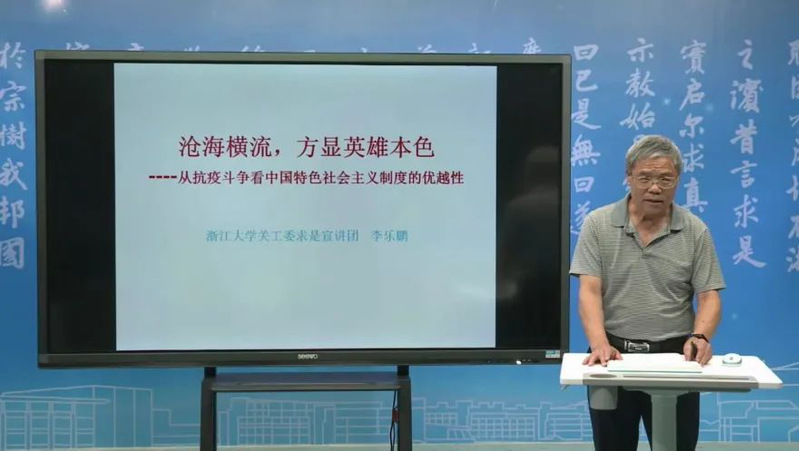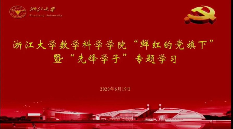 6月19日,数学科学学院“鲜红的党旗下”暨“先锋学子”专题学习活动在玉泉校区顺利举办,这也是学院庆祝建党99周年“迎七一”专题系列活动之一。此次专题学习邀请到了浙江大学关心下一代工作委员会副秘书长、求是宣讲团副团长李乐鹏老师,浙大化工学院原党委书记、研究员、求是宣讲团成员吴星义老师及学院“社会主义核心价值观进班级”讲师团讲师唐松乔同学进行专题分享。三位主讲嘉宾结合党史校史、疫情抗击及制度文化自信等主题,为学院师生党员带来了一堂激励人心的专题党课。