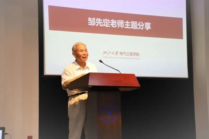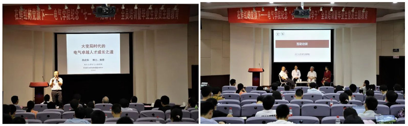 李武华老师接着与大家分享电气人砥砺科技报国的故事。李老师期望同学们在未来的“学”和“术”中,既要“顶天”,看人类看不到的地方,以创新引领祖国百年科技振兴;又要“立地”,自信我国在电气工程领域已处于世界领先地位,书写下一代人的教科书;要内外兼修,既要发出“有功”,也要出“无功”。