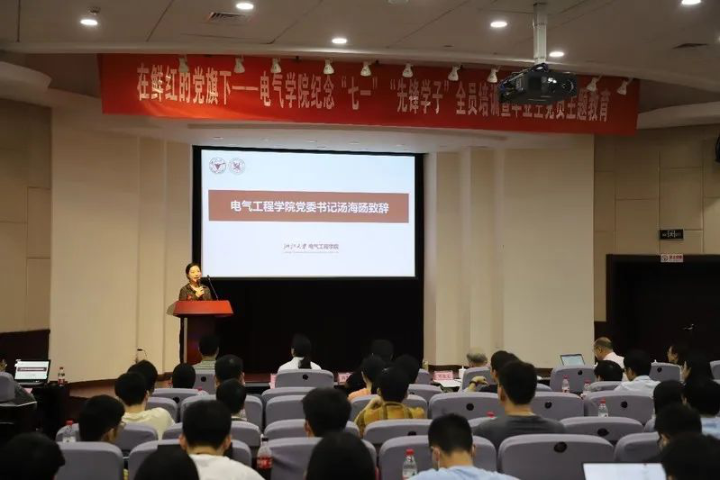 2020年6月23日下午,在鲜红的党旗下——电气学院纪念“七一”“先锋学子”全员培训暨毕业生党员主题教育在浙江大学玉泉校区邵科馆117报告厅圆满举办。电气学院党委书记兼副院长汤海旸老师,校党委学生工作部副部长潘贤林老师,电气学院党委副书记陈敏老师、徐超炯老师出席会议。