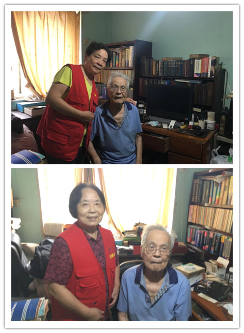 6月30日下午,“银暖夕阳”志愿服务小组组长汪益民和蒋方炎一起上门看望张德馨老师。张老精神矍铄,看到志愿者非常高兴,兴奋地和他们谈养生之道,第二天就是他90周岁生日,回忆当年妻子遗憾地离世而伤心落泪。汪老师和蒋老师悉心安慰张老,与他谈心、拉家常,做好心理抚慰,缓解心理压力,排除心理孤寂。随后汪益民和冯志良一起登门看望黄纪青老师。黄老今年91岁,身体很好,与两位志愿者交谈甚欢,互留了联系方式。