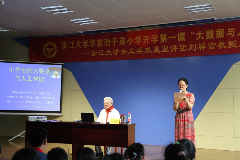 9月1日上午,华家池子弟小学“开学第一课”在学校大礼堂拉开了序幕。特邀浙江大学关工委求是宣讲团刘祥官教授为全校师生作“大数据和人工智能”的专题讲座。浙江大学关工委顾问、求是宣讲团团长邹先定教授,后勤集团关工委副秘书长李英等出席了活动。活动由华家池子弟小学党支部书记寿玮玮主持。