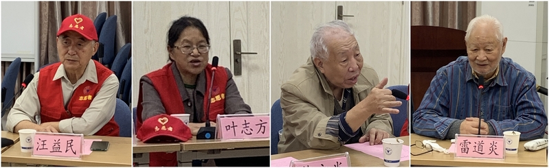 张晓亮介绍了近四个月来“银耀玉泉”志愿者活动的开展情况。“银暖夕阳”志愿服务小组组长汪益民对已开展的志愿工作进行了回顾和总结,他谈到,2020年6月29日志愿者服务队伍成立以来,“银暖夕阳”小组迅速行动,广泛听取意见,确定了结对老同志名单,志愿者们一次次的上门看望和困难帮扶取得了一些成果也总结了一些经验,希望能够将志愿工作在二级单位中推广,调动学生和在职党支部的积极性,共同推进志愿服务工作。志愿者代表叶志方介绍了结对经验,她认为,“银耀玉泉”志愿者服务队为老同志创造了发挥余热的平台,在帮助困难老人的同时也体现了自我价值,年轻的老同志帮助年老的老同志,共同把生活过的更好。结对老同志代表黄帮达和雷道炎对中心和志愿者的工作表示感谢,他们认为这支队伍的成立非常及时且有必要,希望中心能够继续从实际出发,精准发挥志愿者自身优势和特长帮助真正有困难的老同志。