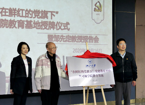 “在鲜红的党旗下”是由浙江大学“关心下一代”工作委员会(简称“关工委”)和求是宣讲团与校党委学工部联手创立的活动平台,在学生中广泛宣讲习近平新时代中国特色社会主义思想和十九大精神。由“关工委”组建的“求是宣讲团”成员拥有着丰富的政治智慧、工作经验、人生阅历,在新时代精神的宣传教育中发挥了重要的作用。“在鲜红的党旗下”党建教育平台竺可桢教育基地的揭牌,将进一步推动竺院党建思政教育活动的开展和大学生家国情怀教育路径的拓宽。揭牌仪式结束后,关工委还向竺院赠书,希望竺院将成为优秀党员的摇篮。