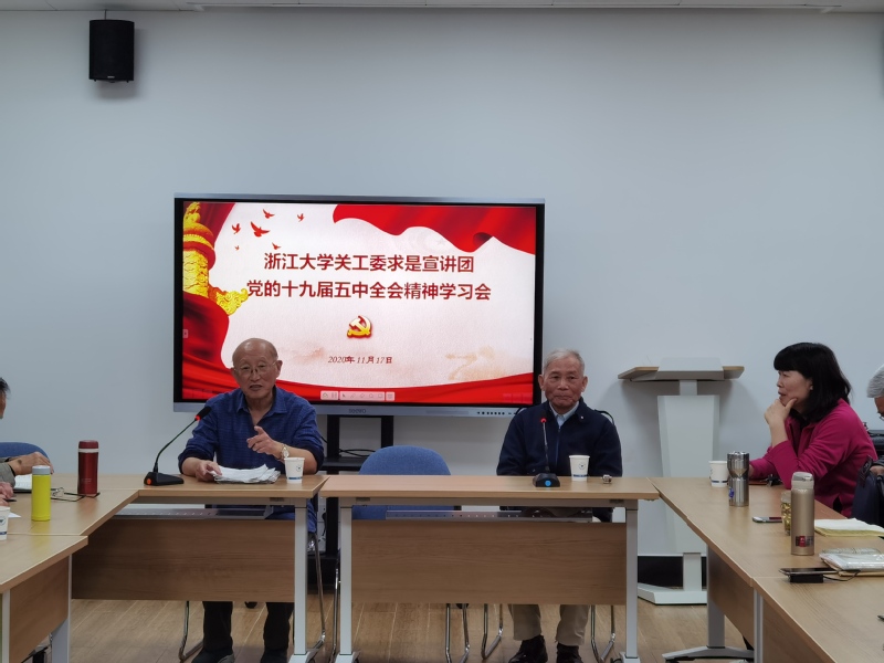 为深入学习领会党的十九届五中全会精神, 11月18日上午,浙江大学关工委求是宣讲团在玉泉校区教工活动中心一楼召开党的十九届五中全会精神学习会。会议由浙江大学关工委顾问、求是宣讲团团长邹先定主持。