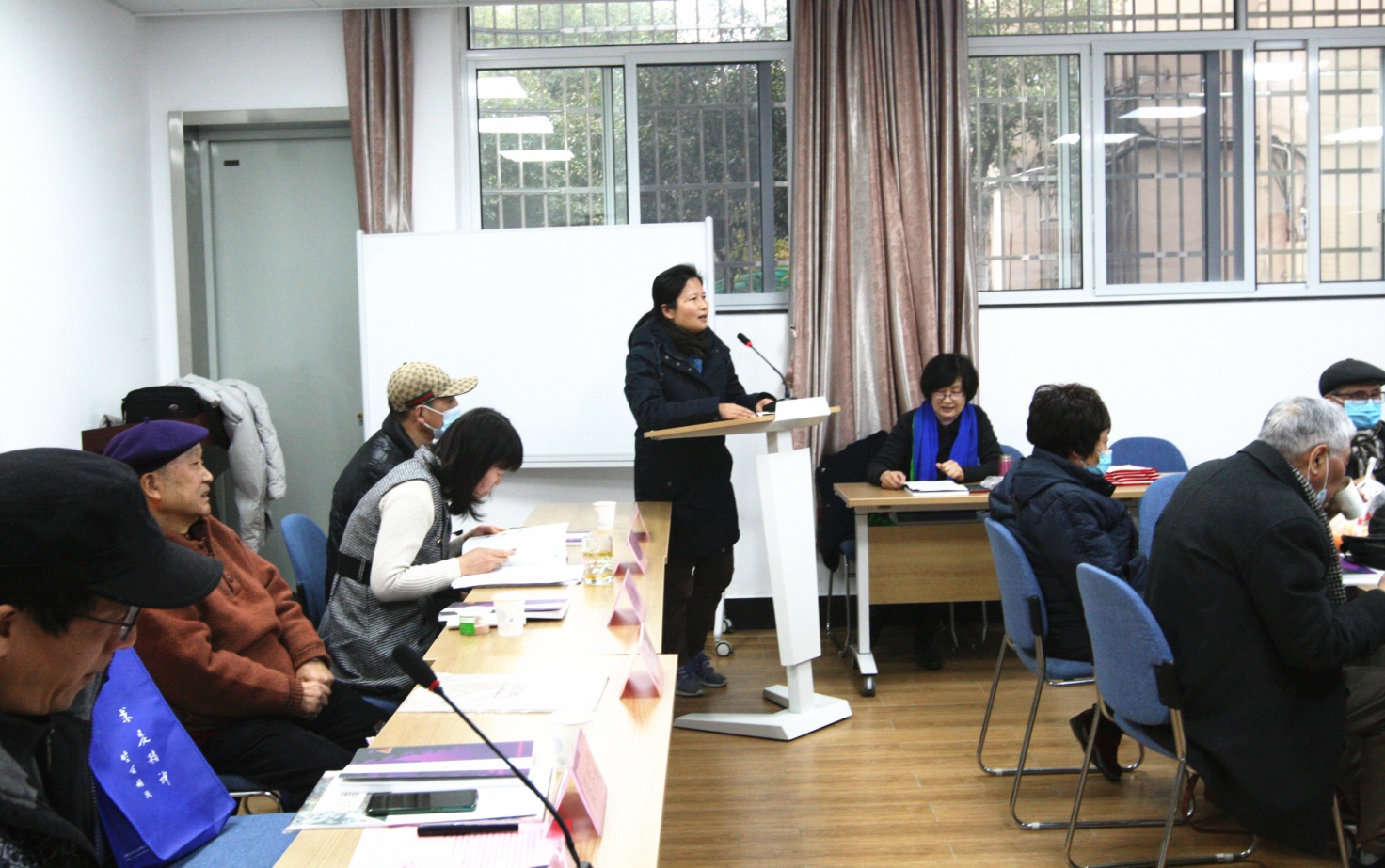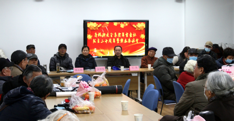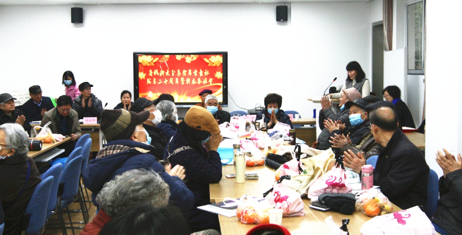 2021年1月5日上午,浙江大学玉泉校区老年书画社50多位社员欢聚在教工活动中心一楼教室,隆重举行庆祝玉泉老年书画社成立二十周年大会暨新春茶话会。浙江大学离退休工作处处长兼离休党工委书记王东、离休党工委常务副书记兼离退休工作处副处长朱征、离退休工作处副处长兼离休党工委副书记韩东晖、玉泉管理服务中心主任俞文胜,求是社区党委书记、社区主任秦容笛,浙江省老干部美术协会主席杜高杰教授出席会议。会议由书画社副社长冯亚非主持。