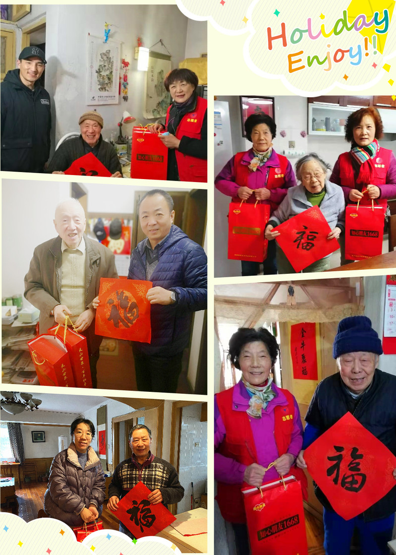 春节前,离休党工委常务副书记兼离退休工作处副处长朱征与中心人员,上门慰问周培源、俞蒙槐、顾伟康、徐裕钧、唐锦春、吴平东、朱深潮等多位校老领导,传递学校的关心温暖;会同“银耀玉泉”志愿者上门慰问阮学涛、郭本铁、关内明等百岁老人和严炳源、何圣凤、李家元、卫鸿初等其他老同志,了解他们的生活需求,致以新春的祝福和问候。