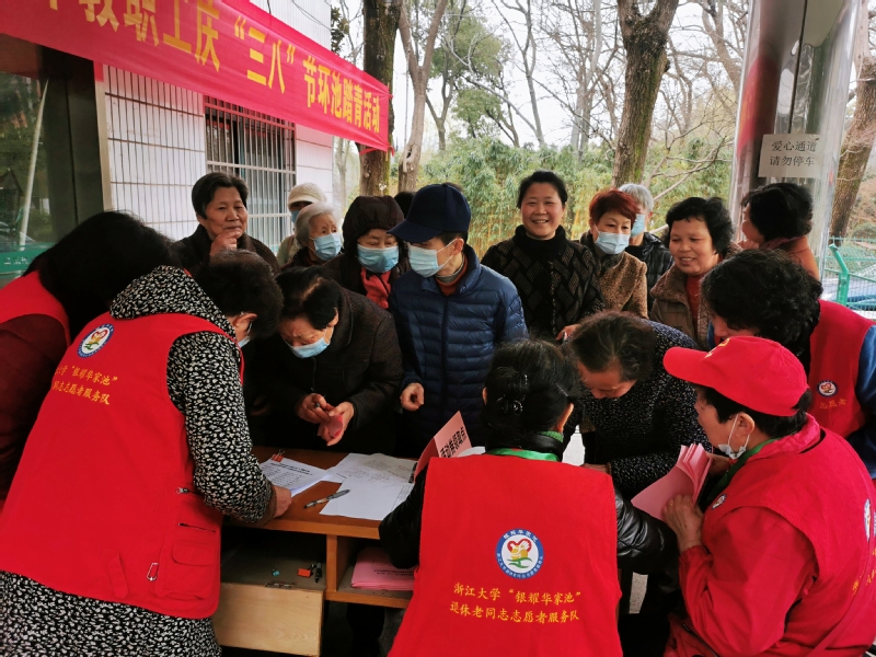 “阳春布德泽,万物生光辉”。为庆祝“三八”国际劳动妇女节,关心关爱离退休女教职工,丰富离退休教职工的业余文化生活,3月10日上午,华家池管理服务中心举行离退休女教职工庆“三八”妇女节健步走暨华家池全体离退休教职工环池踏青活动,共有800余名老同志踊跃参加。在“银耀华家池”志愿者的热心服务和引导下,老同志们有序领取活动券和纪念品,环池踏青,秩序井然,热闹非凡。