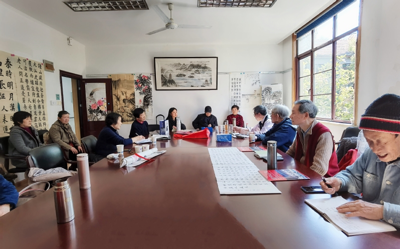 3月底,西溪书画院预约东横教学楼活动室开展2021年第一次月度作品展示暨新学期碰头会,十余名老同志参加了当天的活动。副处长王珏、西溪中心联系协助老年大学工作具体负责人张文馨列席。