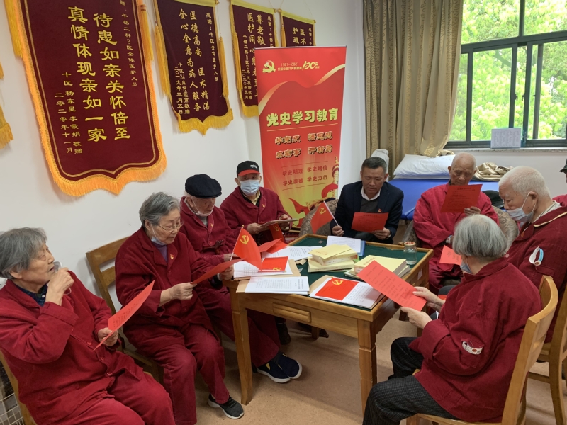 离休干部党史学习热情高涨,住在天目山医院的西溪离休干部创新自学形式,自主成立了党史学习小组,并在固定时间进行学习交流,结合入党故事、党务工作经历重温党史,牢记今日局面来之不易。学习小组也是在后“双高期”老干部当中落实集中学习和党建工作的一项有益探索,目前该小组已吸纳西溪、玉泉党总支等住天目山医院离休干部6人。湖滨离休干部开展了 “向党说句心里话” 微倡议活动,抗战老兵封政激动地说:“我是1945年入党的,党在信仰就在!我要交365元党费,365天每天党都在我心中!”,马达表示:“伟大的中国共产党我永远跟着你走,中国一定富强!世界一定大同!”,最后大家齐声表达 “我跟党干革命一辈子,听党话,信党爱党跟党走,要为党旗增光”抒发对党无限忠诚、永远跟党走的深厚感情。