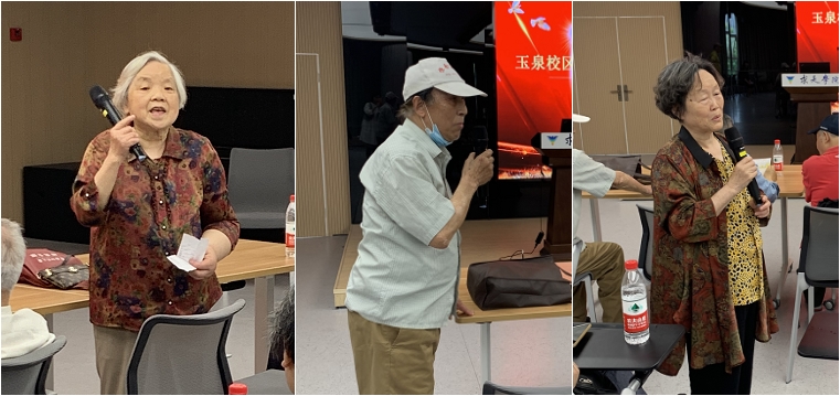 张丽英用“三个一”总结到:11年前,玉泉校区规定病种康乐家园开展了第一次活动,今年也是自己患癌后康复的第31年,更是自己入党的第61年,我们要乐观向上,珍惜来之不易的幸福生活,不忘初心、牢记使命,永远跟党走!丰雨定对玉泉校区规定病种康乐家园的成立表示感谢,这是学校对这个“特殊群体”的特别关心,每年组织丰富多样的活动,不仅提供了交流沟通的平台,更提供了提高思想认识的学习机会。吕思菊认为,今天的活动是精神上的鼓舞,只要能走、能说、能干,就要去实现价值,弘扬正能量。说到动情处,吕老师为大家演唱了《唱支山歌给党听》将现场气氛推向高潮。楼振来谈到,今天的参观学习活动让他更加深刻感受到了红船精神的内涵,进一步坚定了不忘初心跟党走的决心。91岁高龄的张学仁感慨万千,他对我中心特有的规定病种康乐家园表示肯定,他认为,患癌不可怕,只要乐观开朗,将精力倾注在爱好上,就能战胜病魔。黄祯地用轻松幽默的话语和大家分享了养生经验。