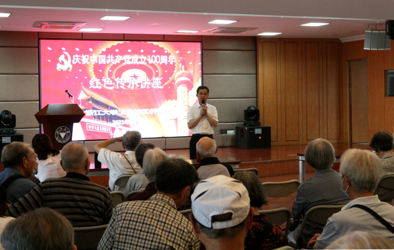 百年征程波澜壮阔,百年大党风华正茂。为庆祝党的百年华诞,2021年5月14日上午,浙江大学玉泉校区侨(留)联庆祝中国共产党成立100周年红色讲座在玉泉教工活动中心二楼大厅顺利举办。浙江大学离退休工作处处长兼离休党工委书记王东,党委统战部副部长钱智敢、挂职副部长林振智,原新华社香港分社经济部副部长范正翘等近百位侨(留)联成员参加了此次活动。玉泉校区侨(留)联主席沈锦林主持。