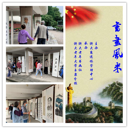 活动现场展出浙江大学老年大学书画班作品,以书画寄情怀,用多彩的笔墨展现了国家新时代新风貌,抒写了对祖国的真情与热爱。大家边欣赏边交流心得,以文会友,为此次活动添光溢彩!