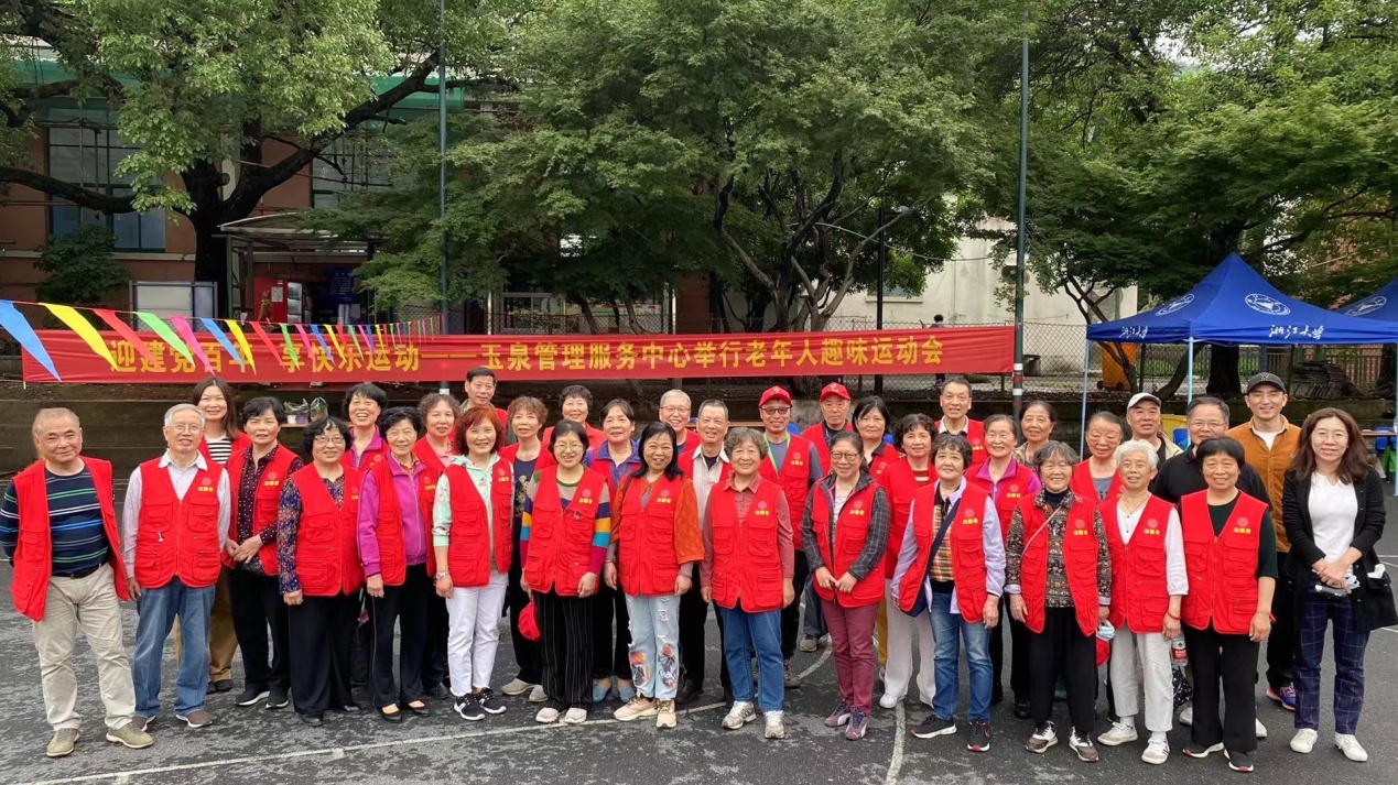 为庆祝中国共产党成立100周年,弘扬“老有所养,老有所为,老有所乐”的中华民族传统文化,丰富退休人员的文娱健康生活,2021年5月20日上午,玉泉管理服务中心组织开展的校区老年趣味运动会在室外篮球场顺利举行,820名老同志参加。