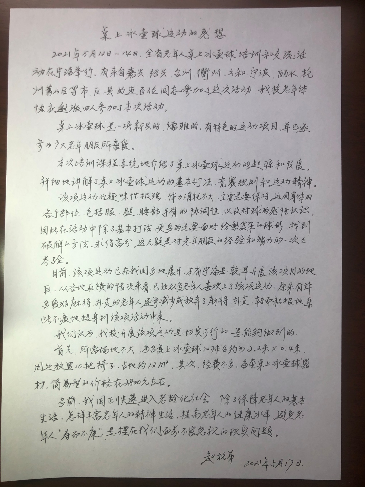 5月12日至14日,浙江省老年人桌上冰壶球培训班在宁海如期举办,校老年体协选派华军、赵杭弟、梁刚英、宋丽亚参加培训。