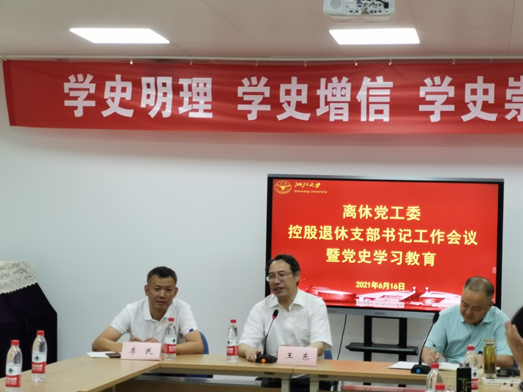 庆建党一百年,学党史重实效。2021年6月16日上午,学校离休党工委在玉泉教工活动中心一楼教室组织召开了产业退休支部书记工作研讨暨党史学习会议,离休党工委书记、离退休工作处处长王东、离休党工委副书记、离退休工作处副处长李民、兼职组织员马衡及15位党支部书记参会,会议由浙大原控股集团离退休办主任张金钟主持。