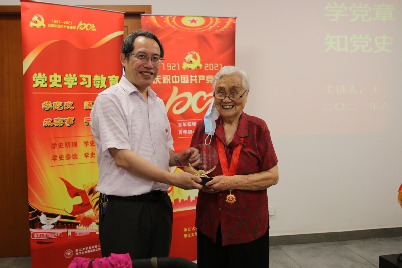 6月17日,在神舟十二号飞向天和空间站的这一天,我校离休党工委、有关离休党总支开始了2021年新一轮七一专题党课送课上门、上医院。当天上午,住天目山医院的浙江大学离休干部参加了《学党章,知党史》党课,并与其中老党员分享了佩戴“光荣在党50年”纪念章的珍贵时刻。