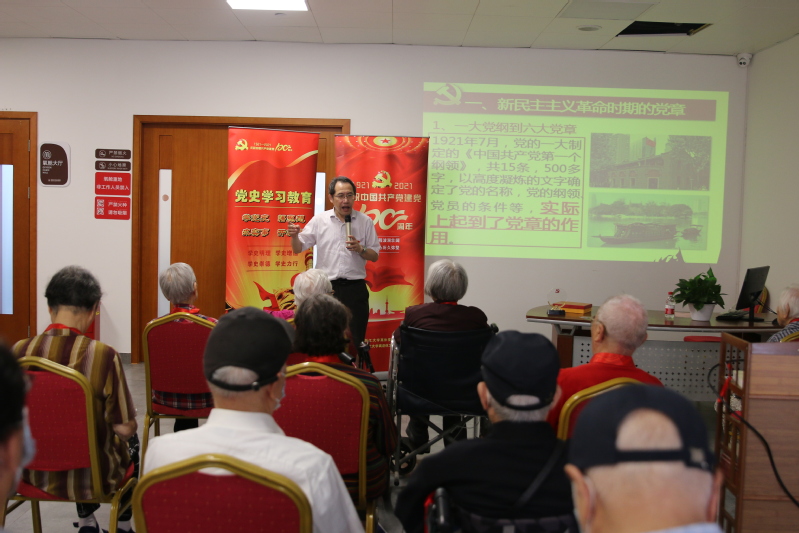 离休党工委书记、组织部副部长王东主讲了当天第一课《学党章,知党史》。党课从学习回顾新民主主义革命时期、社会主义建设时期、改革开放时期和进入新时代以来四个时期的党章及修订入手,生动阐释了百年党史以及关系党和国家命运的重大时刻。王东书记在感谢老党员老同志为党为国和为学校事业发展一辈子奉献的同时,鼓励老党员、老干部们更加紧密地团结在以习近平同志为核心的党中央周围,坚决维护习近平总书记党中央的核心、全党的核心地位,坚决维护党中央权威和集中统一领导,新老同志携手迈步,踏上习近平新时代中国特色社会主义思想发展实践、全面建设中国社会主义现代化国家的新征程。