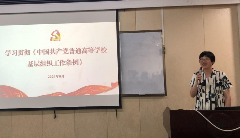 百年征程浩荡,百年初心如磐。系党委书记应伟清为大家解读新修订的《中国共产党普通高等学校基层组织工作条例》,指出要把立德树人作为根本任务,把理想信念教育放在首位,加强基层党组织建设,夯实党支部战斗堡垒作用,发挥群团组织、学术组织和广大师生的作用,共同做好思想政治工作。她强调,全体师生党员要坚守初心使命,践行“两个维护”,当好学习研究宣传习近平新时代中国特色社会主义思想的排头兵,当好推动高等教育事业高质量发展的突击队,以优异成绩庆祝中国共产党成立100周年。