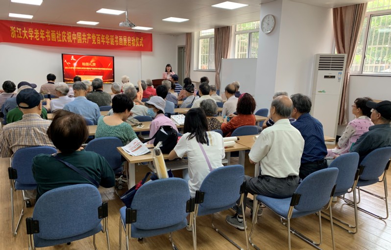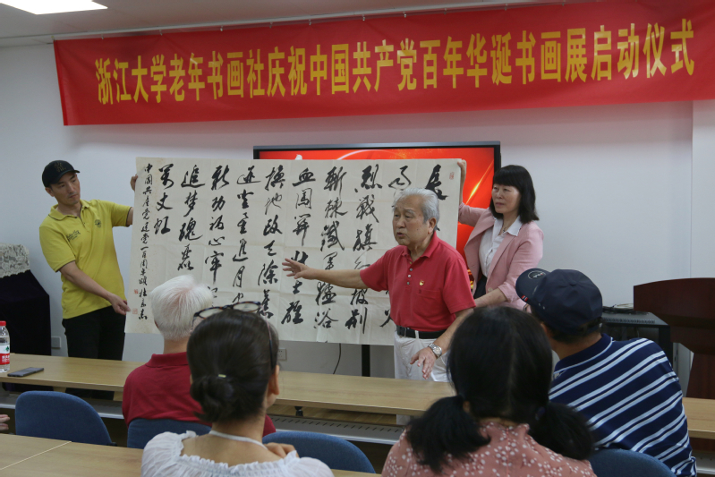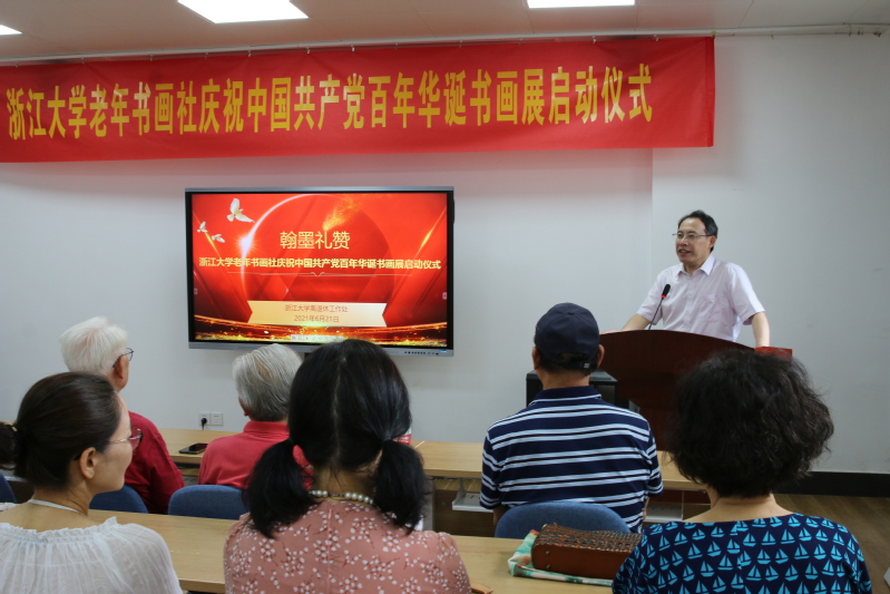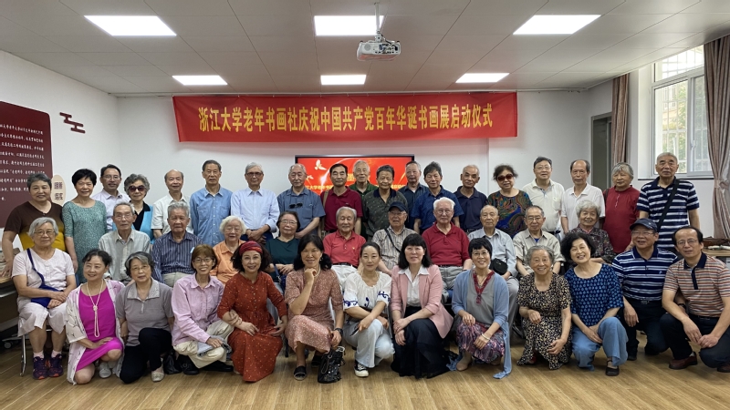浙江大学老年书画社庆祝中国共产党百年华诞书画展,是2021年“银龄共庆”系列活动之一,由浙江大学离退休工作处主办,浙江大学老年书画社承办,玉泉管理服务中心协办。书画展地点在玉泉教工活动中心三楼,展览将持续至七月上旬。