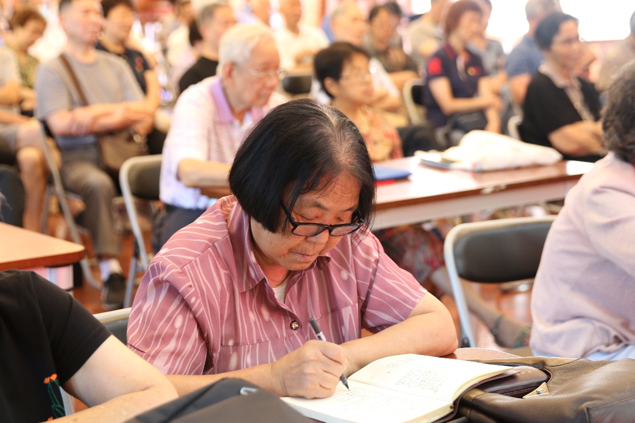 与会人员时而全神贯注聆听,时而认真记录听课笔记。邹教授所作的精彩报告令在座全体人员心潮澎湃,会场上掌声如潮,大家纷纷畅谈感想。浙江大学关工委求是宣讲团副团长、浙江大学党史学习教育宣讲团成员彭凤仪说,邹团长满怀深情,慷慨激昂,大量案例展现伟大飞跃,惊天动地,感人至深。机关退休党支部支委王榕英谈到,报告最后邹团长激动地站起来,满怀深情地朗诵了习近平总书记在党史学习教育动员大会上关于中国共产党人精神谱系的重要讲话,令人十分感动,深受启发。