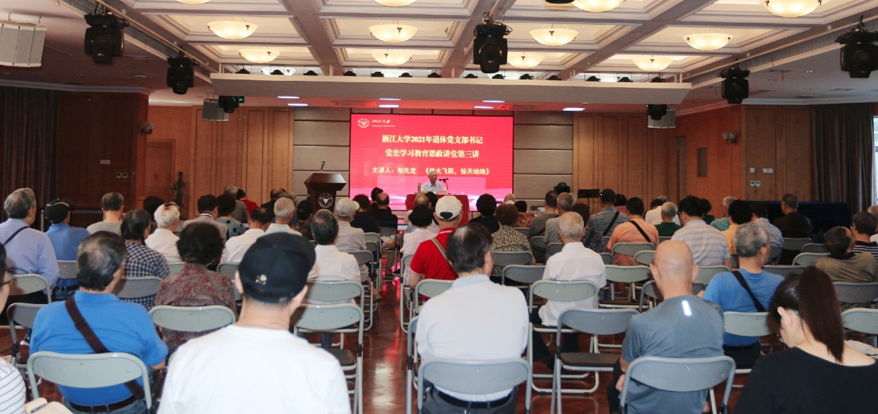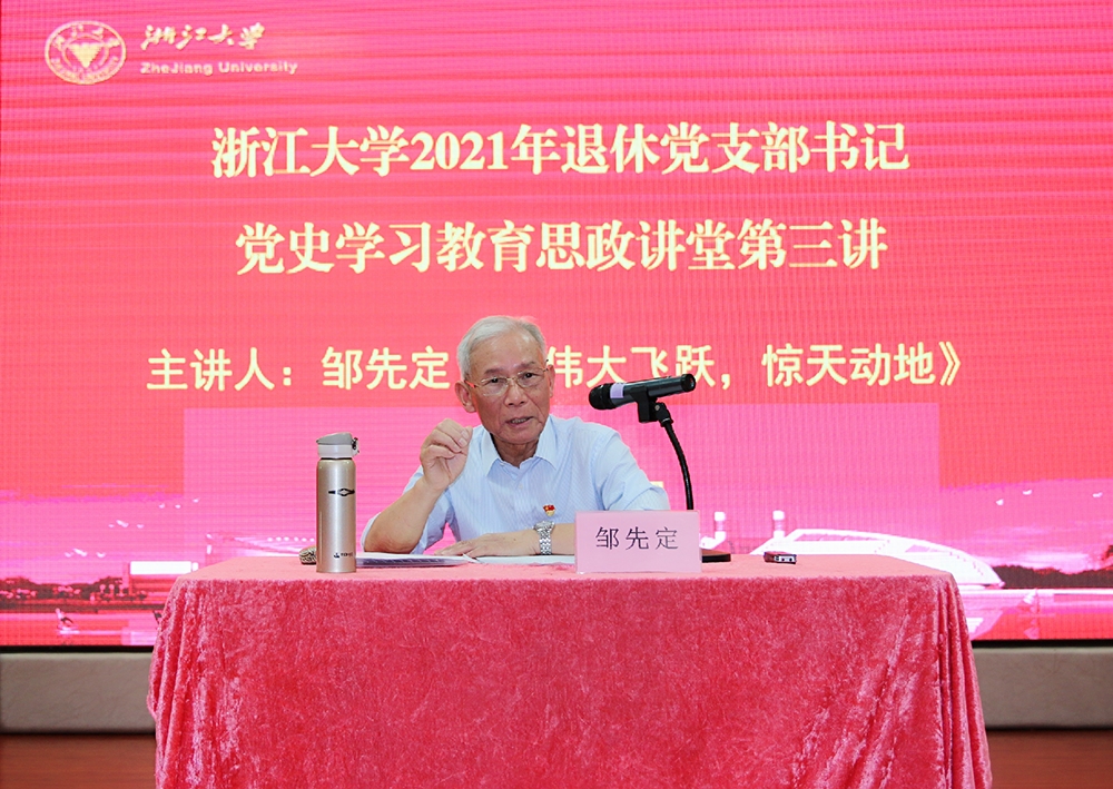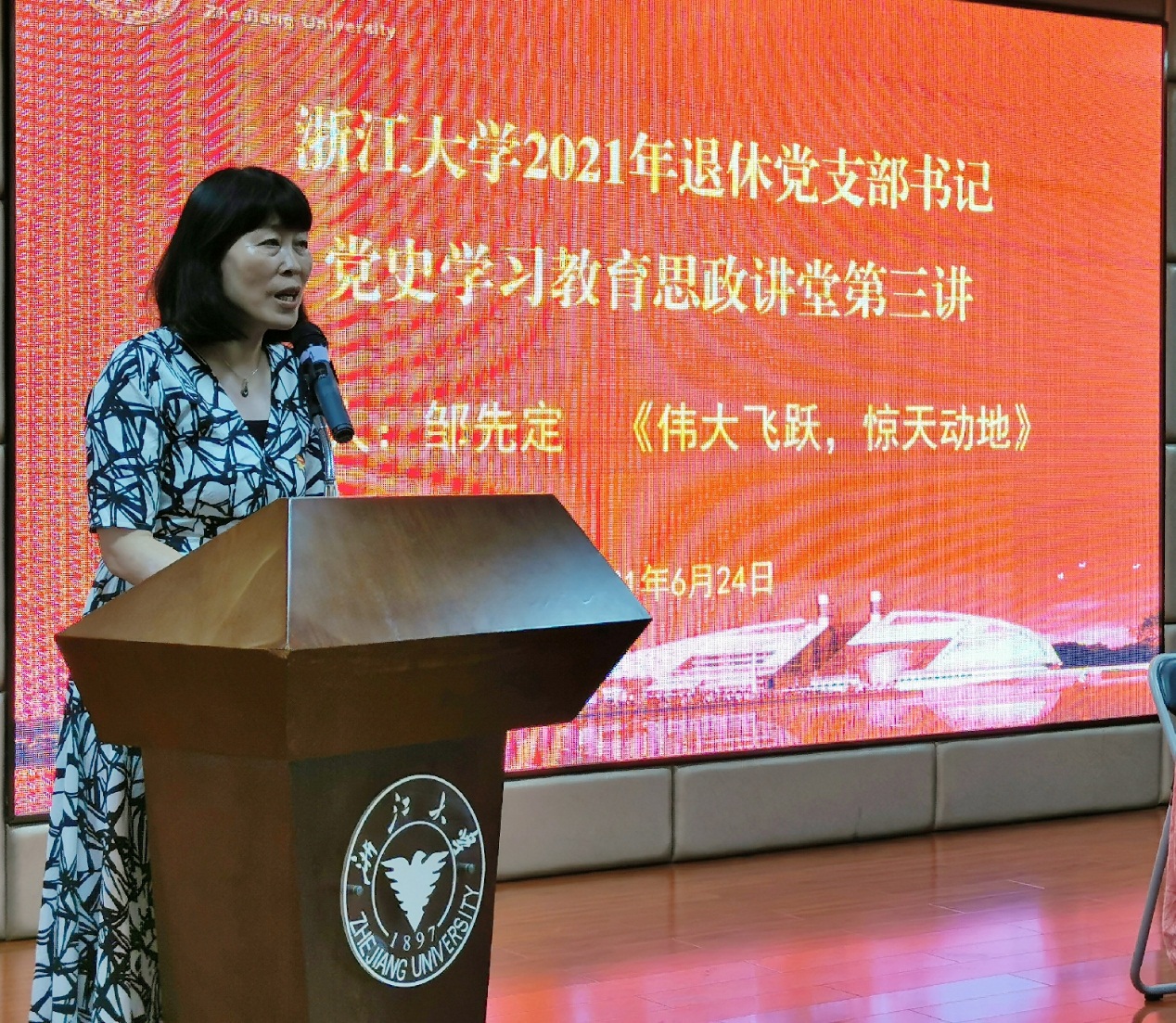 本次培训会邀请了浙江大学关工委顾问、求是宣讲团团长、浙江大学党史学习教育宣讲团成员、浙江省老干部红色讲师邹先定教授作《伟大飞跃、惊天动地——党领导人民从站起来、富起来迎来强起来的百年伟业》的专题报告。校退休党支部书记代表、离退休工作处党支部党员等近七十人参加报告会。离退休工作处班子成员王东、朱征、王珏、韩东晖、李民也参加了报告会,报告会由离休党工委常务副书记、离退休工作处副处长朱征主持。