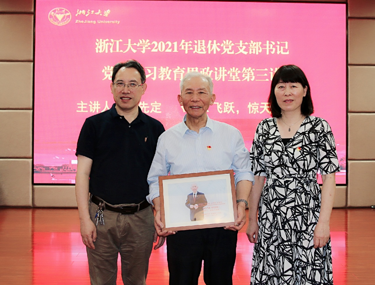 会上,浙江大学离退休工作处处长兼离休党工委书记王东为邹先定教授授予党史学习教育活动铭牌。