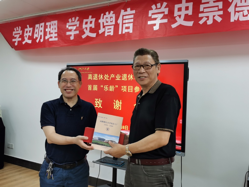 老同志们纷纷感言,原浙江大学工会常务副主席、机械工厂党总支书记肖文良表示,“乐龄”项目很好,过去校办企业做出的贡献,我们不能忘记,要把校办企业的精神传承下去。原半导体厂厂长岑文华表示,能把校办企业这段历史回顾编撰,是对校办企业的肯定。校办企业在当时真的是了不起。原控股集团党委书记杨其和介绍了原浙江农业大学农机实验工厂创建历程,同时建议把2000年到2020年这二十年的产业发展篇续上。致谢会在颁发文集和留影中顺利结束。