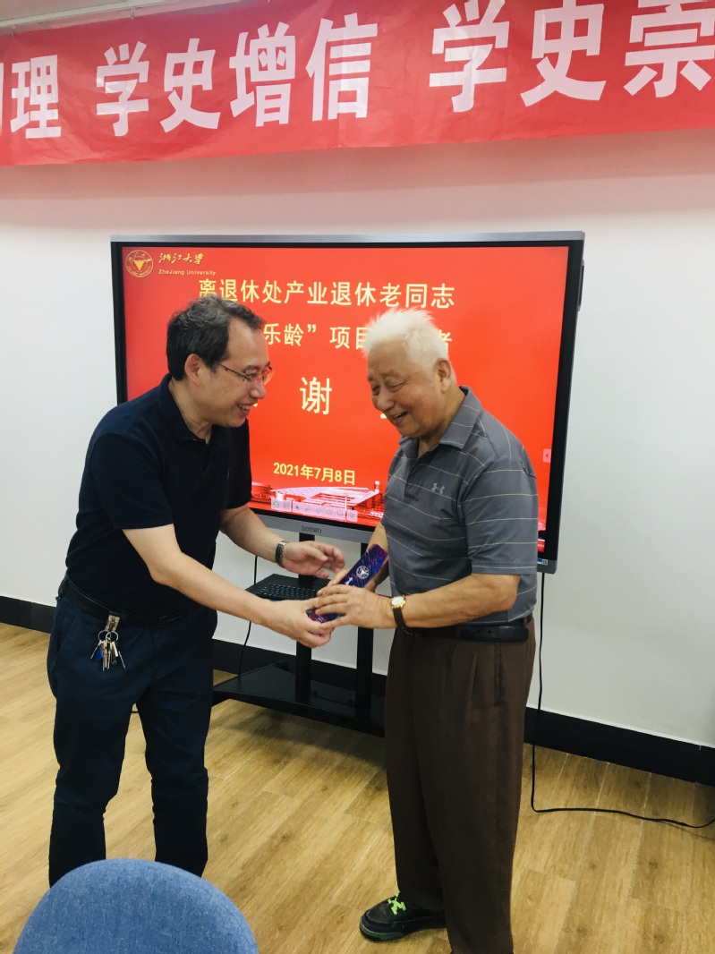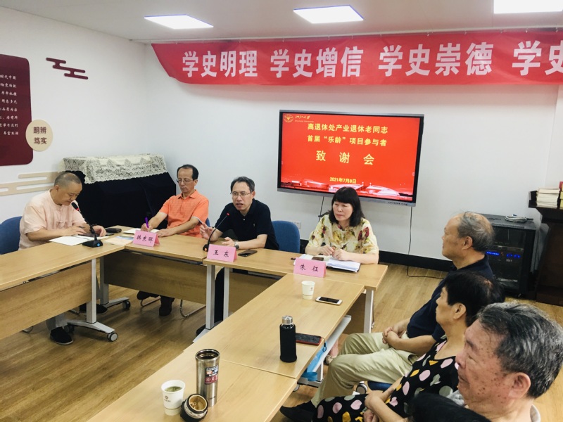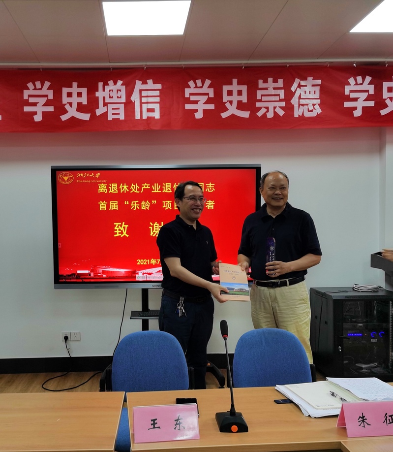 2021年7月8日上午9点,玉泉教工活动中心1楼教室,喜气洋洋,参与我校离退休工作处首届“乐龄”项目的产业退休老同志们齐聚一堂,共同参加以“学校企业在产、学、研转化和发展中的贡献”为题申报的项目结题致谢会。到会的有离退休处处长王东、副处长朱征、副处长韩东晖、兼职组织员马衡、15位党支部书记、以及参与编撰的杨其和、肖文良、罗建明、岑文华、陈进勇等12位老厂长、老书记,会议由原控股集团离退休办主任张金钟主持。