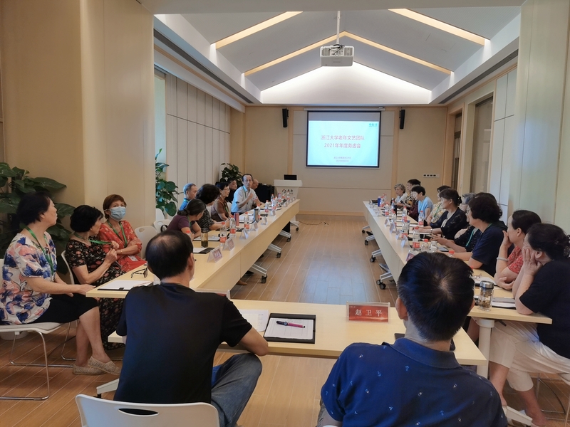 2021年9月22日下午,浙江大学老年文艺团队年度务虚会在杭州大清谷社区召开,务虚会由处分管领导韩东晖主持,我校19支老年文艺团队的负责人共计25人参加会议。