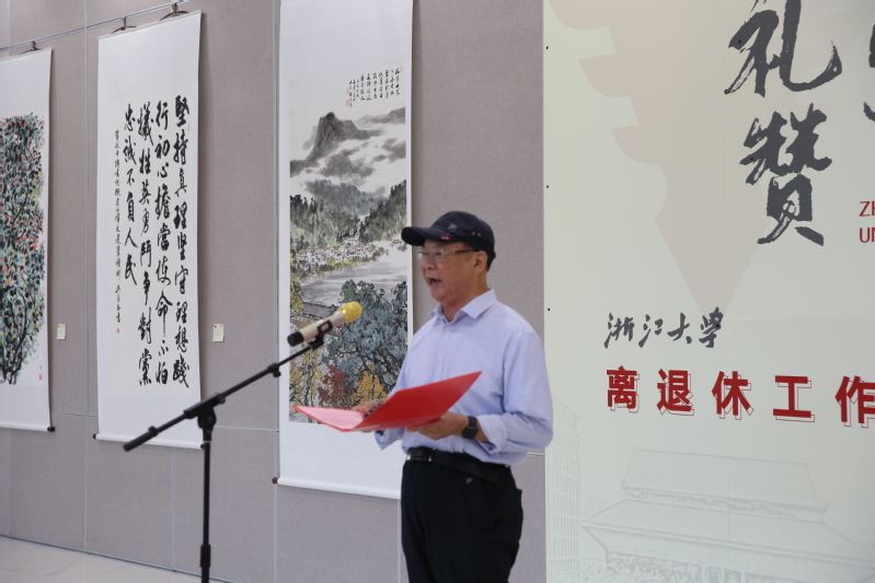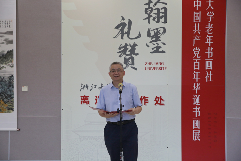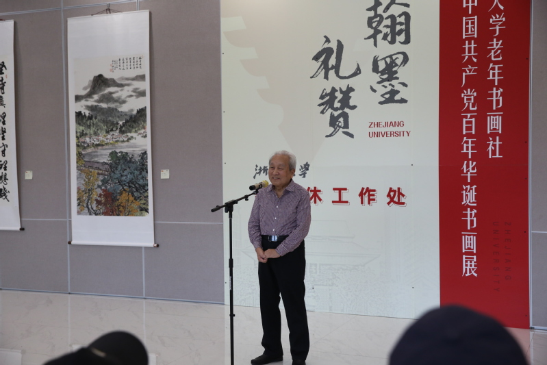 我校教授、杭州市文联名誉主席、浙江省老干部美术家协会主席、浙江西湖书画院院长杜高杰在讲话中对本次展出的书画作品给予了很高的评价。