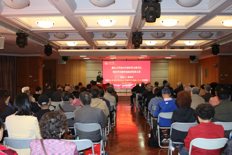 为深入学习贯彻习近平新时代中国特色社会主义思想和党的十九大精神,深入贯彻落实党中央关于在全党开展党史学习教育的重要部署,2021年10月29日上午,我校在玉泉教工活动中心二楼多功能厅举办2021年退休党支部书记党史学习教育思政讲堂第五讲。