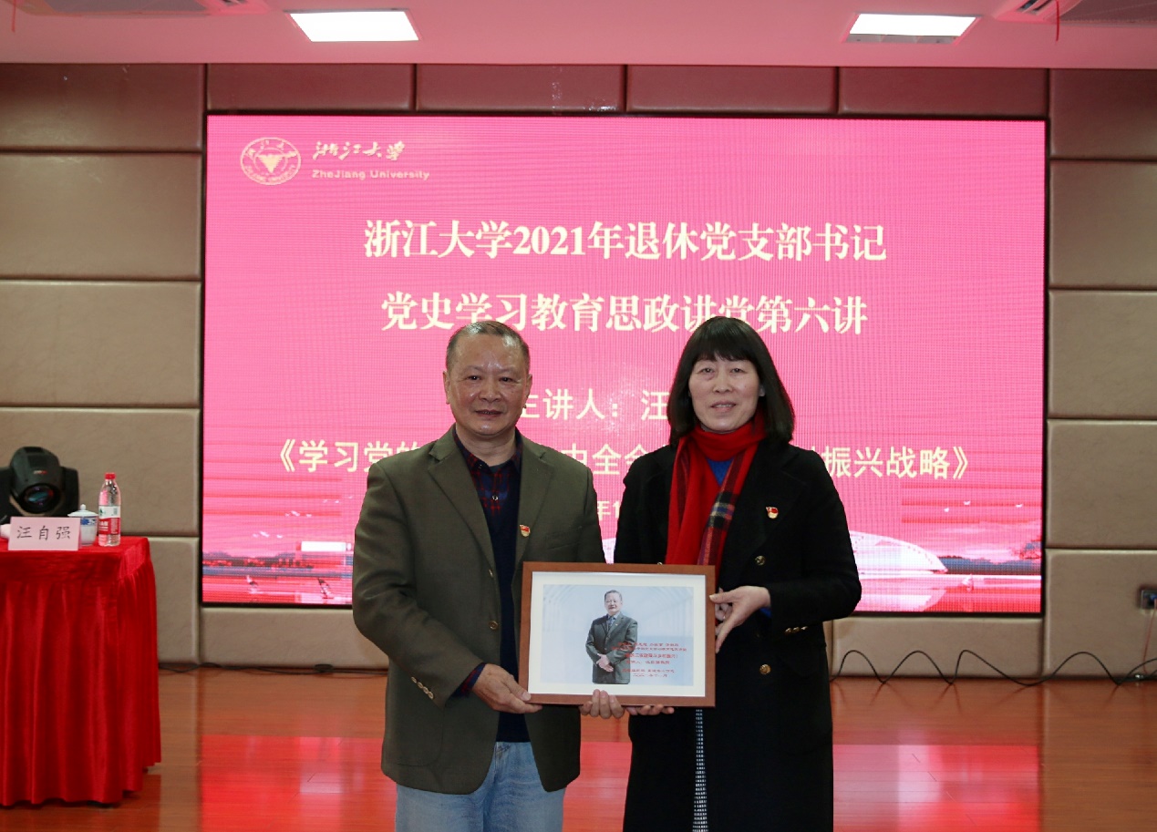 本次讲座邀请了浙江大学关工委求是宣讲团、党史学习教育宣讲团成员汪自强教授作《学习党的十九届六中全会精神和乡村振兴战略》专题报告。校退休党支部书记代表、退休党员骨干代表、机关党委玉泉退休第六支部党员代表、离退休工作处党支部党员代表等百余人参加报告会。报告会由离退休工作处处长兼离休党工委书记朱征主持。