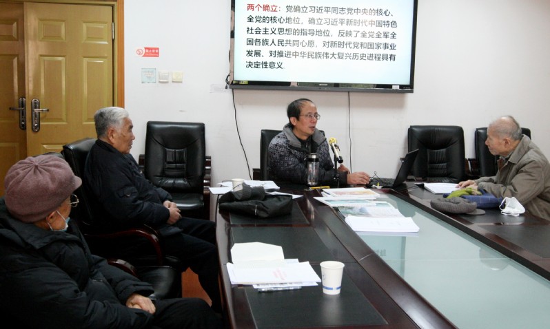 2021年12月28日上午,10位玉泉离休干部相聚在教工活动中心303会议室。这是继11月18日之后,玉泉离休党总支又一次组织离休干部深入学习党的十九届六中全会精神。学习会由总支书记韩 东晖主持。