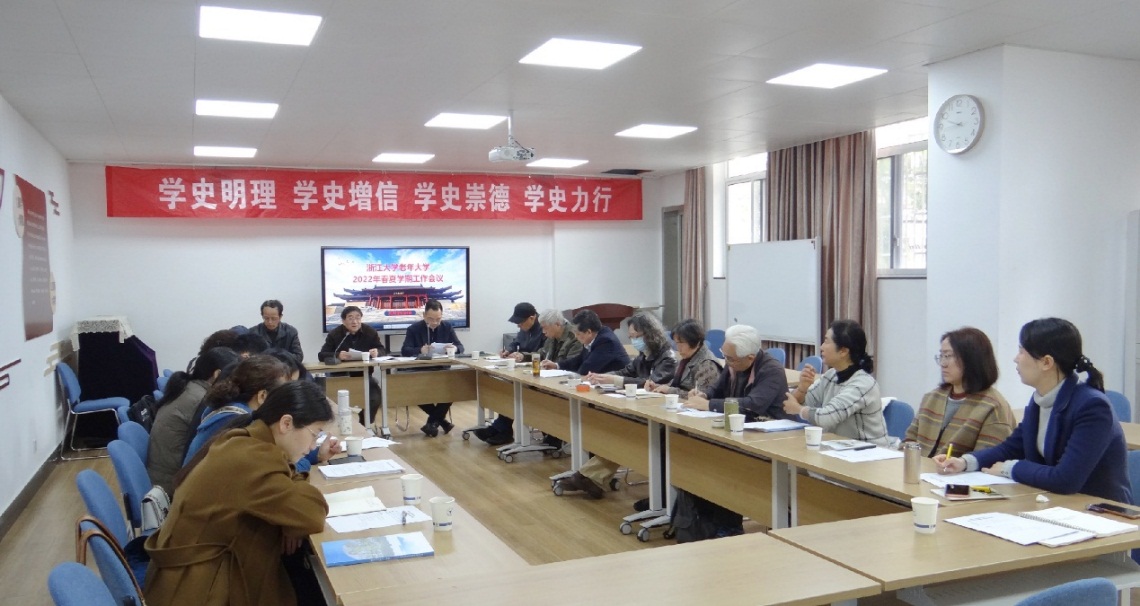 3月3日,浙江大学老年大学2022年春夏学期工作会议在玉泉教职工活动中心一楼会议室顺利召开。老年大学校长林荣堂、离退休工作处副处长兼离休党工委副书记韩东晖、老年大学及各分校正副校长、各分校负责工作人员参加了本次会议。会议由离退休工作处副处长兼离休党工委副书记陈立明主持。