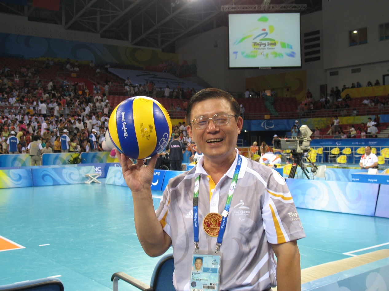 金中仁老师在2008北京残奥运会坐排比赛中担任临场裁判