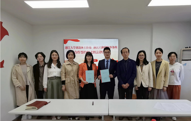 为进一步满足浙江大学离退休老同志日益增长的法律服务需求,切实保护老同志的合法权益,维护家庭代际和谐,离退休工作处与浙江六和律师事务所合作开展公益法律服务。韩东晖介绍了与六和律师事务所的合作背景及合作内容。签约仪式上,朱征与袁杭代表双方进行签约。袁杭介绍了六和律师事务针对浙江大学离退休老同志所推出的“银暖夕阳”专属服务内容,即以“三个一”为载体,提供一系列法律公益服务、一对一的私人财富管理与传承法律服务和一整套争议解决方案,为我校老同志提供法律宣传、法律咨询、非诉服务、争议解决等闭环式法律服务。
