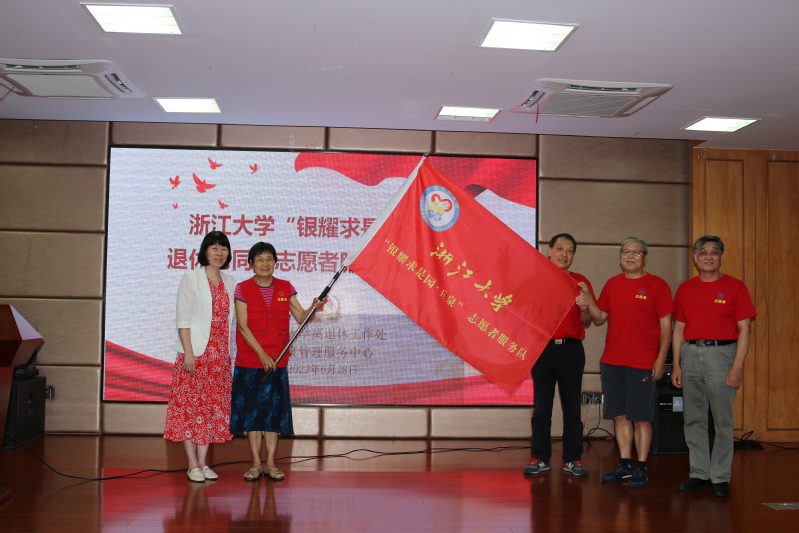 2022年6月28日下午,浙江大学“银耀求是园•玉泉”退休老同志志愿者服务队换届会议在玉泉教工活动中心二楼多功能厅举行。离退休工作处处长兼离休党工委书记、党委组织部副部长朱征,计算机科学与技术学院党委书记彭列平、外国语学院党委副书记费兰兰、浙大求是社区党委副书记潘洁敏、离退休工作处玉泉管理服务中心主任俞文胜、副主任张晓亮,“银耀求是园•玉泉”退休老同志志愿者参加本次会议。离退休工作处副处长兼离休党工委副书记韩东晖主持会议。