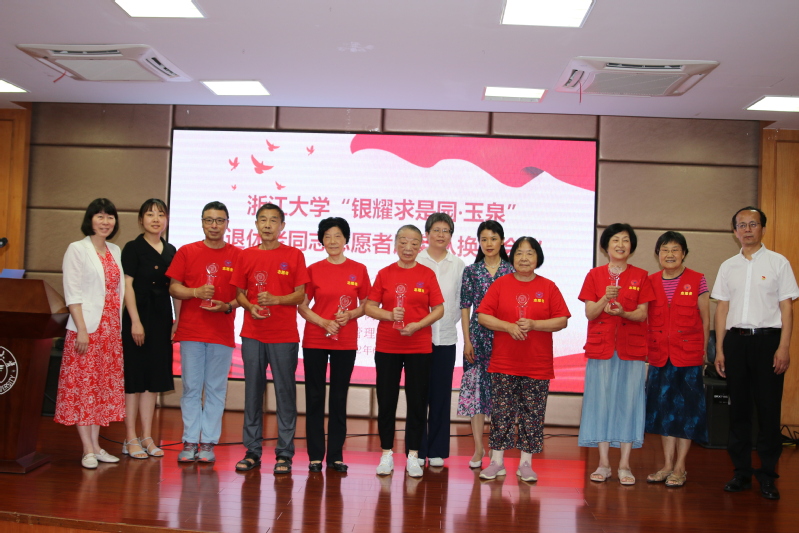 会议最后,全体人员合唱《浙大银耀志愿者之歌》:“送温暖、送健康,发挥余热作贡献”“为了爱一起来”,歌声悠扬,大家纷纷在志愿者队旗下合影留念,让奉献的力量和爱的力量传递。