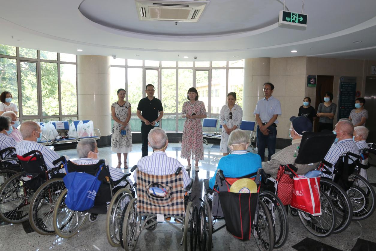 6月27日下午,离休党工委、离退休工作处全体班子成员专程赴浙江医院灵隐院区看望住院的离休干部,送学到医院。朱帼英等10位离休干部佩戴党徽,集中在门诊大楼二楼。朱征处长代表班子成员致辞,并与其他班子成员共祝离休干部身体健康!万事顺心!