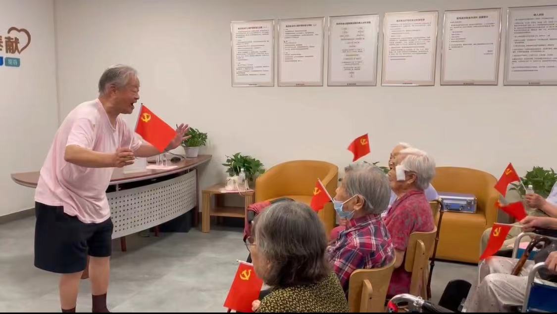 随后,离休干部张大炎指挥与会人员齐声合唱《你是灯塔》。现场的离休干部挥舞着红色的旗帜,唱响爱党爱国之情。参加活动的工作人员深受感染,表示要向离休干部学习,用心用情,服务好每位离休干部。