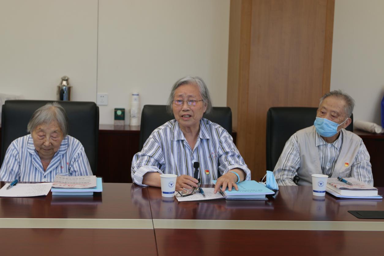 有着党龄79年的方舟激动地说:我党迎来了建党第101个生日,真不简单,真不容易!我感恩党,感谢党组织的培养。我愿意为党奋斗终身。参加过抗日战争、解放战争、抗美援朝战争的百岁老人朱人杰说:我们住在这里都很好,请组织上放心。我还想多活几年,看看国家的发展变化,看看学校的进步。