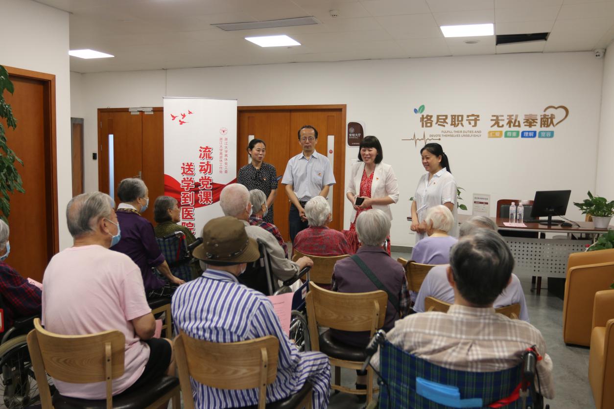 6月6日上午,离休党工委、离退休工作处全体班子成员专程赴浙江人民医院望江山院区看望住院的离休干部,8位离休干部现场参加学习交流。