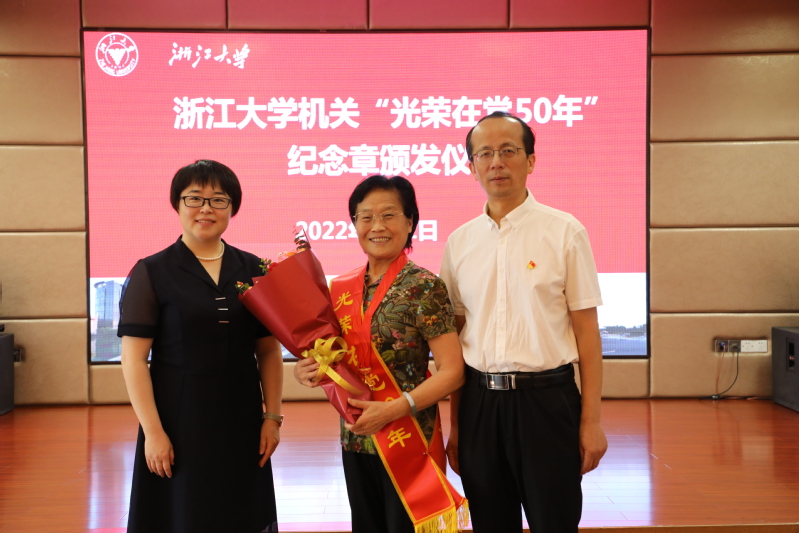 2022年7月1日上午,浙江大学机关举行了“光荣在党50年”纪念章颁发仪式。“光荣在党50年”老党员及相关部门负责人参加仪式,机关党委书记刘艳辉主持仪式。