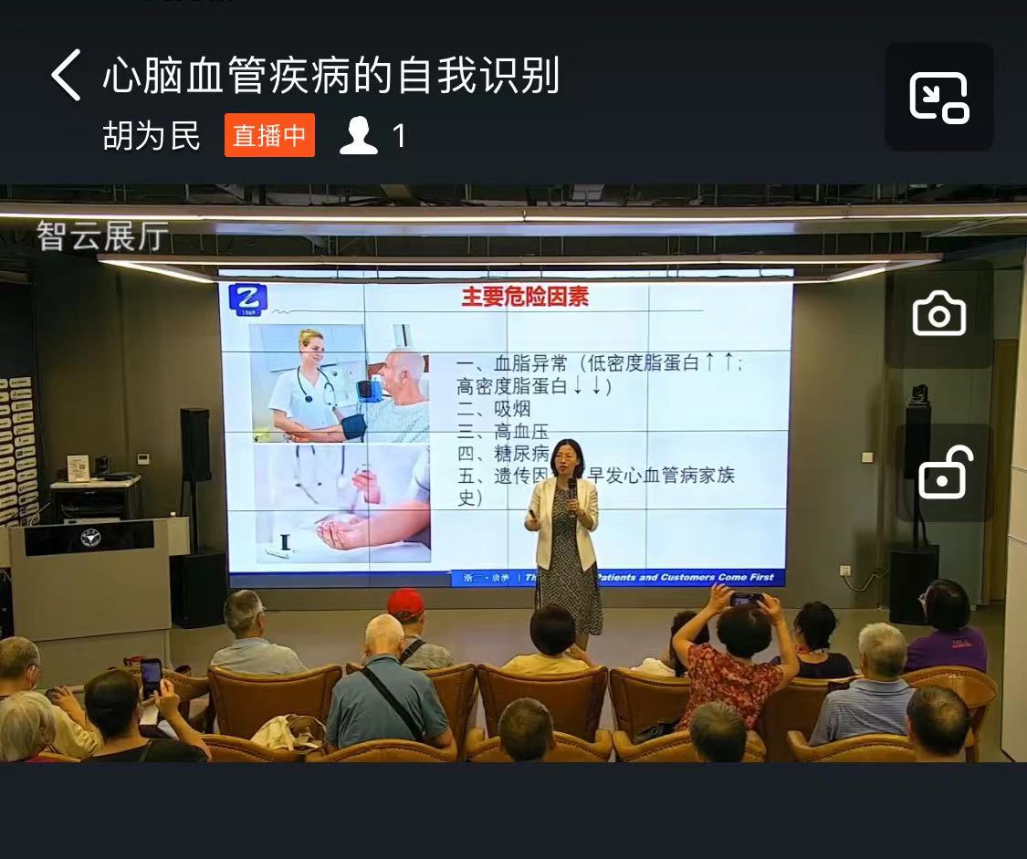 在各位老同志的殷切期待中,第三期健康讲座拉开了帷幕。杨旻斐护士长深入浅出地介绍了冠状动脉粥样硬化、冠心病、急性脑卒中等心脑血管疾病的形成、发展与表现症状等知识,并详细讲解了如何识别这几种心脑血管疾病及其预防措施,进一步提高了老年人健康生活、预防疾病的意识。