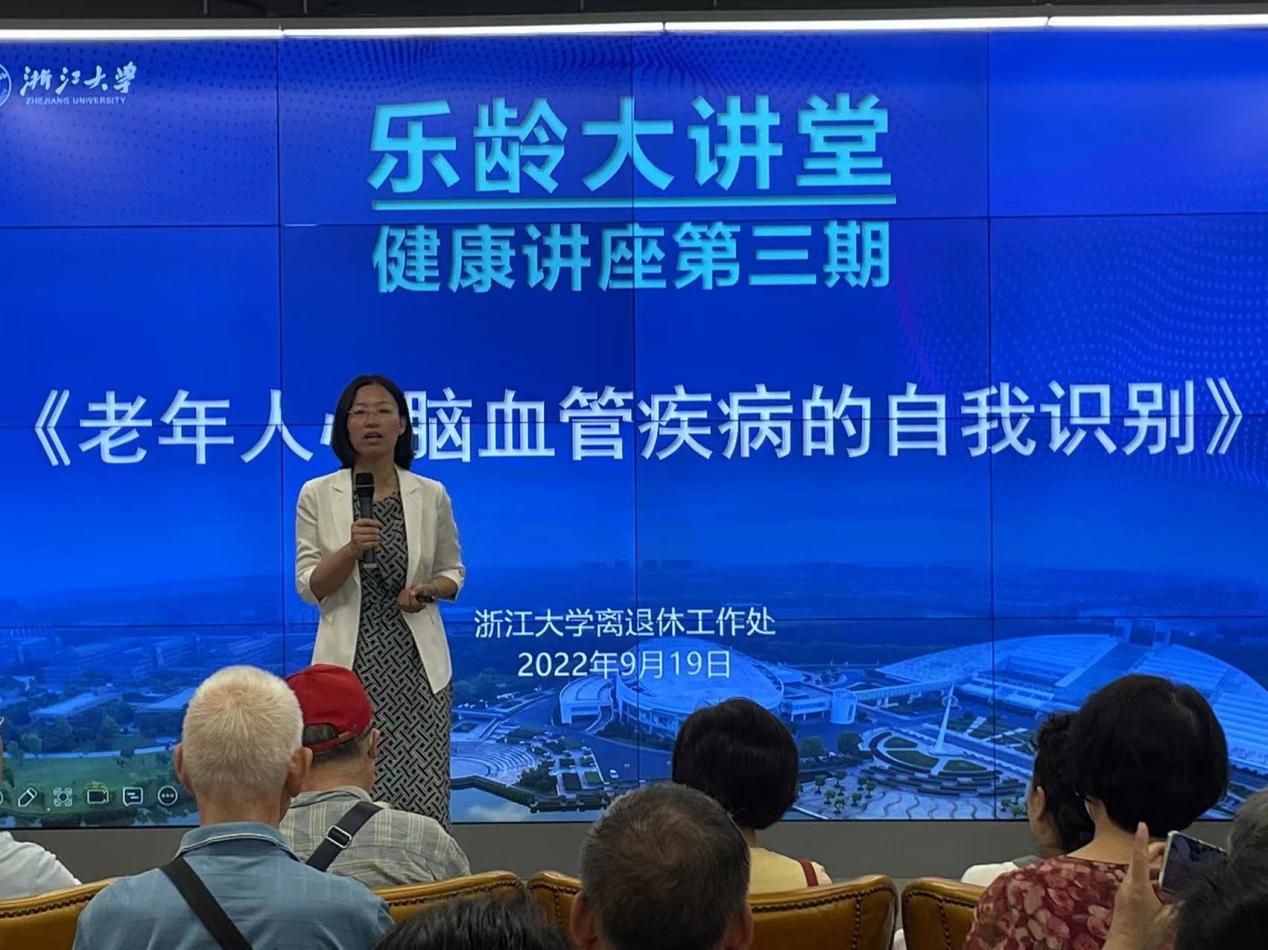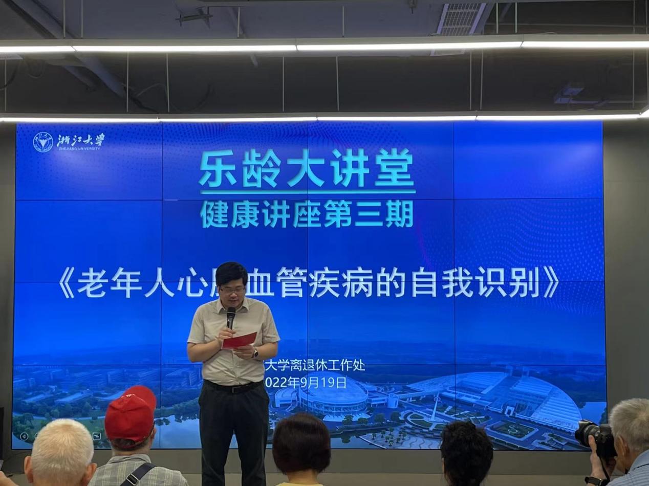 为加强老年健康知识宣传和教育,提升老年人健康素养,浙江大学离退休工作处特别开设“乐龄大讲堂”系列健康讲座。9月19日上午,我处邀请到浙江大学医学院附属第二医院急诊科护士长杨旻斐,为学校离退休人员讲解老年人心脑血管疾病的相关知识。讲座由离退休工作处专聘副处长杨正明主持,20多位退休老同志现场参加了健康讲座。