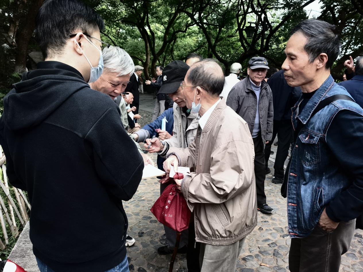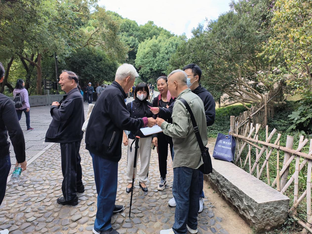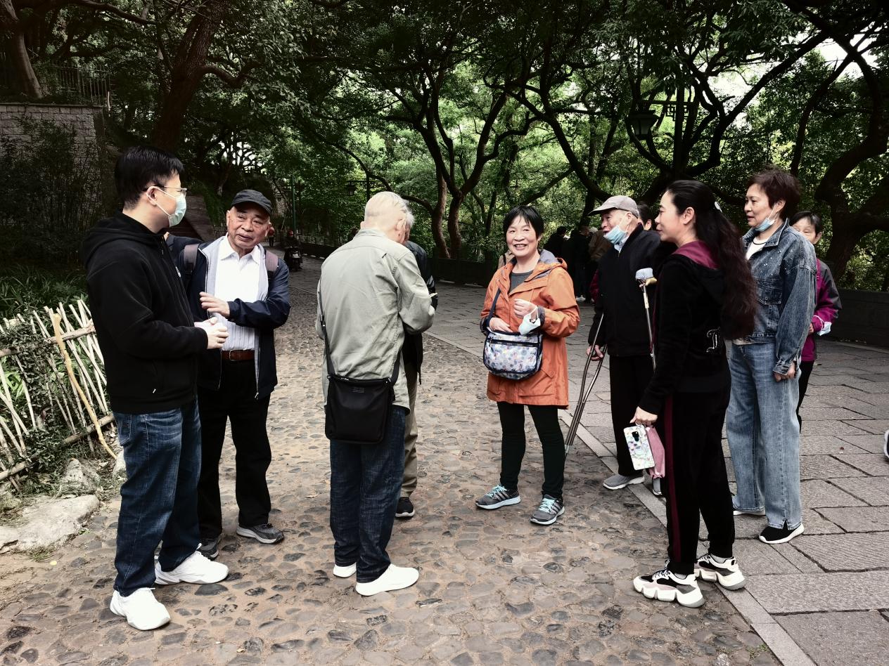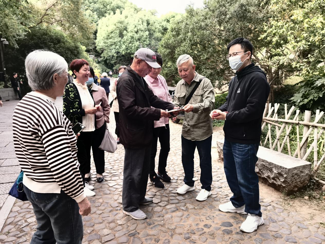 沐浴着秋日的晨光,老同志们陆续地来到了吴山十二生肖石旁,在葱翠的绿树掩映下,清新的空气伴随着淡淡的桂花香氛,老同志们相见甚欢,或闲话家常,或共忆青春,畅谈祖国新气象新变化。